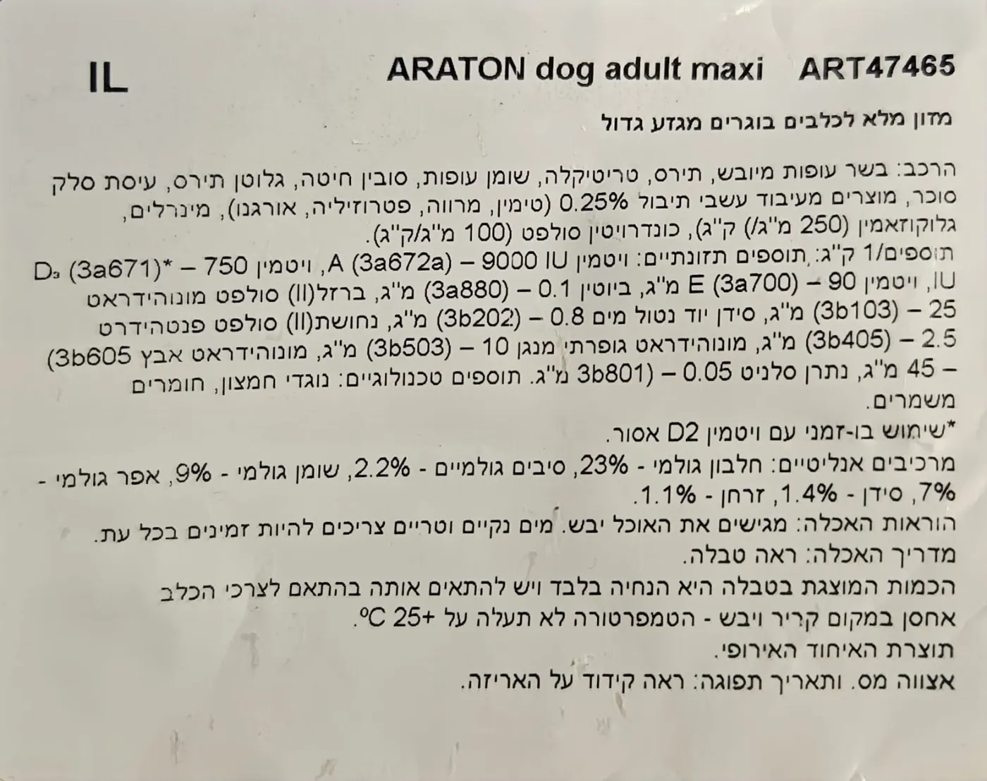 ARATON-LARGE BREEDS-אראטון עוף לכלבים בוגרים מגזע גדול 15 ED