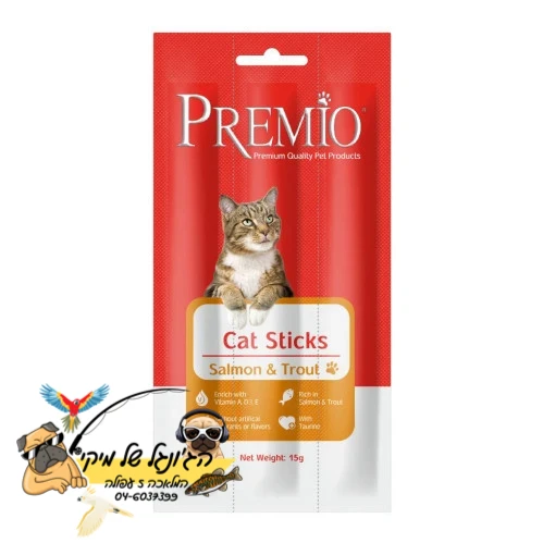 PREMIO פרמיו סטיק לחתול סלמון ופורל 15 גרם