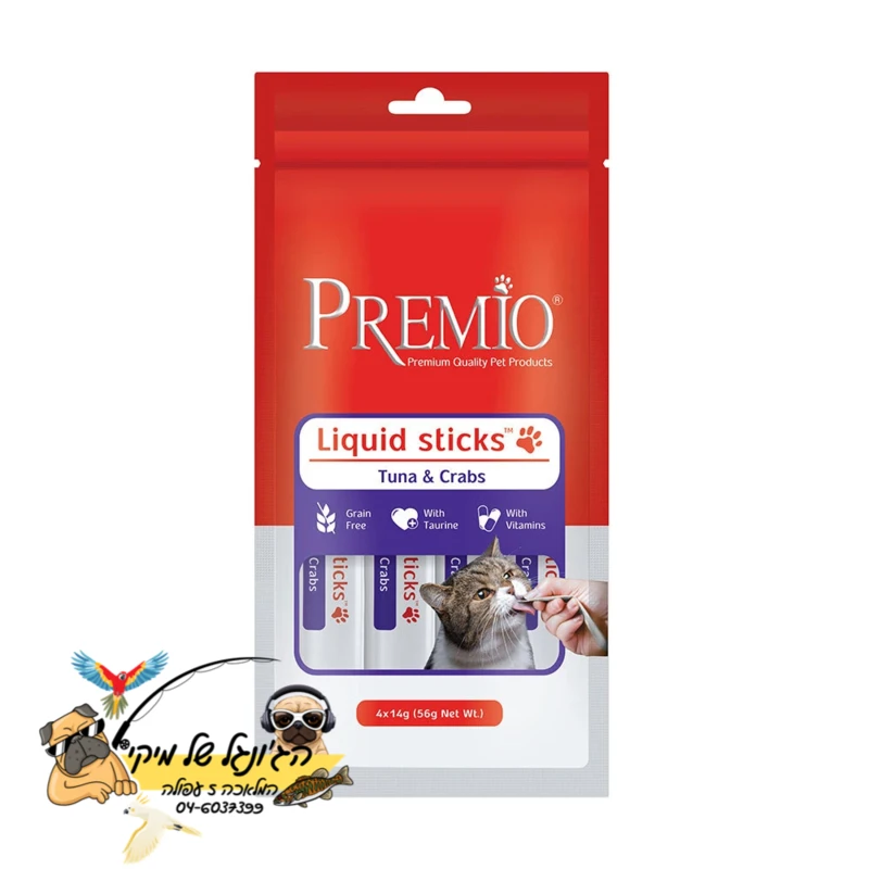 חטיף שלוק פרמיו לחתול דג טונה וסרטנים 56 גרם