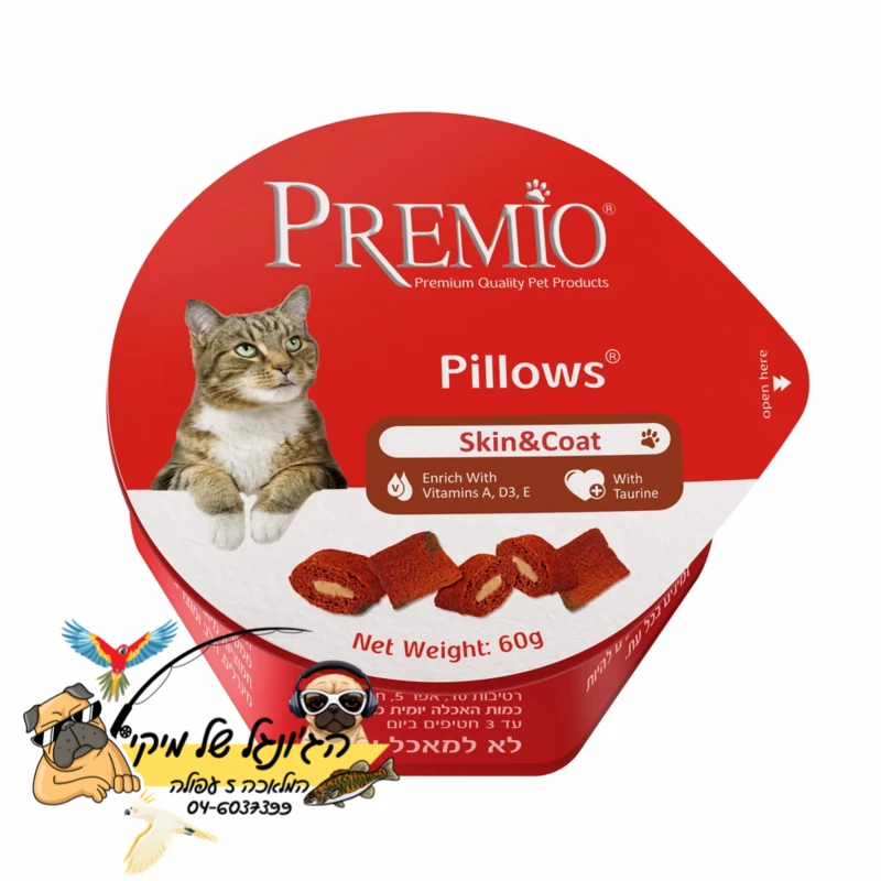 PREMIO חטיף פרמיו לחתול כריות לטיפוח העור והפרווה 60 גרם