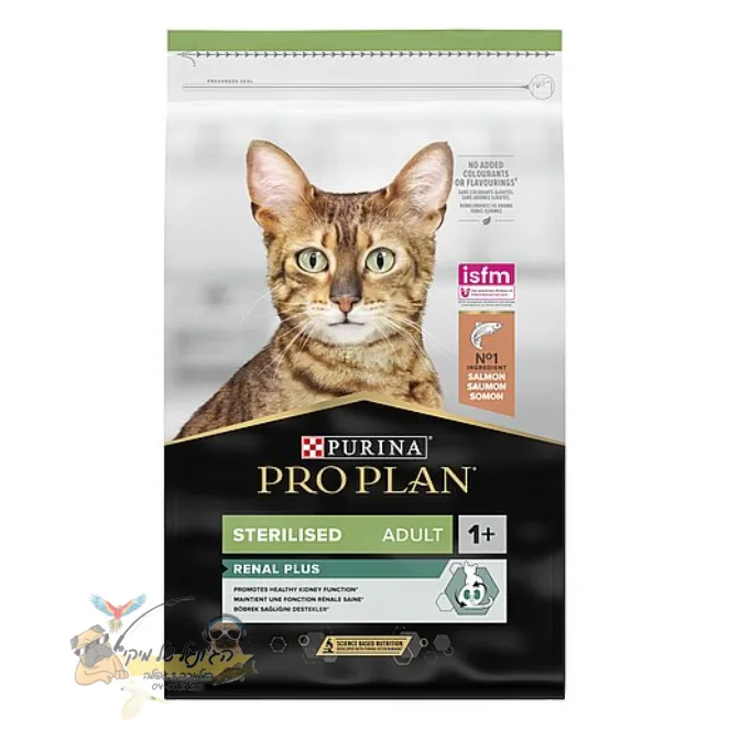 פרו פלאן Sterilised הינו מזון המיועד לחתולים לאחר עיקור או סירוס, המפחית את הסיכון לגדילת חיידקים ולזיהומים ועוזר בהגנה על דרכי השתן התחתונות. מכיל נוסחת Renal Plus לשמירה על בריאות הכליות בחתולים. חתולים שצרכו פרו פלאן Sterilised, הראו שיפור משמעותי במדדי איכויות השתן לאחר 6 שבועות והוכיחו תפקודי כליות טובים יותר. עשוי מבשר סלמון כמרכיב ראשון, המבושל בתהליך ייחודי שמשר את איכות הרכיבים וערכיהם התזונת.