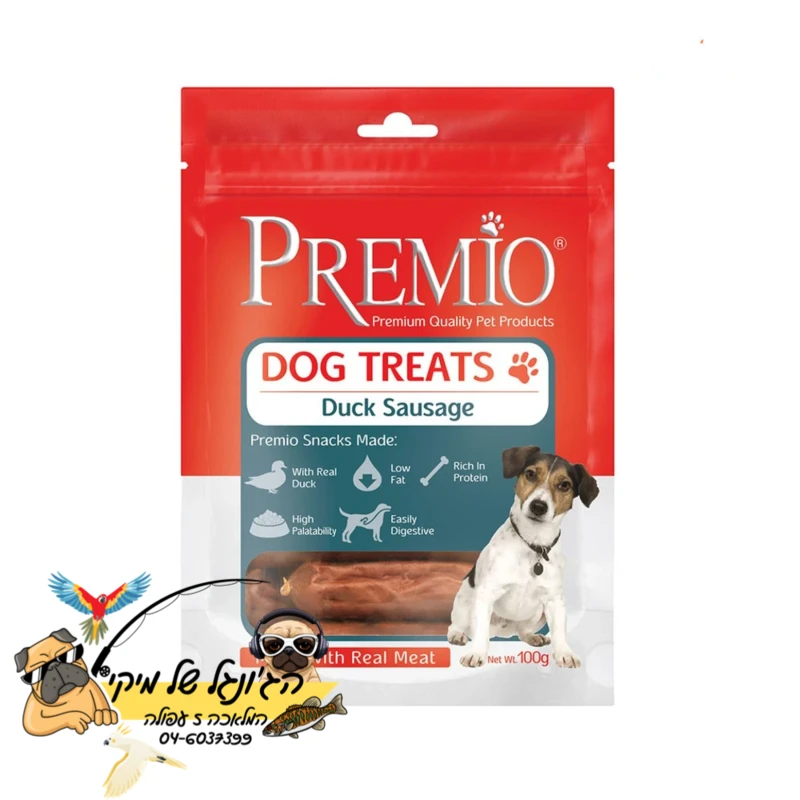 חטיף פרמיו לכלב נקניקיות ברווז 100 גרם