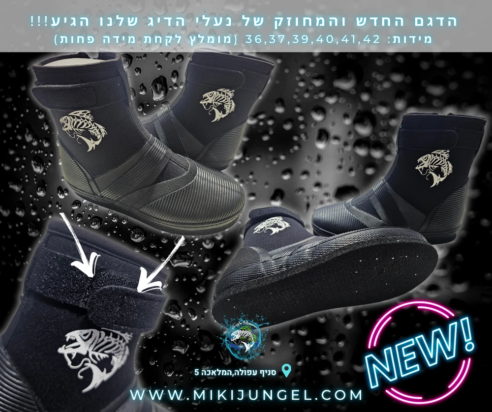 נעליים לדייג (הדגם החדש) ניאופרן עם סוליית לבד/קוצים למניעת החלקה