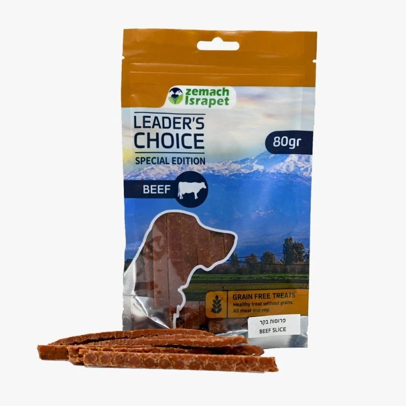 LEADERS-CHOICE-לידר צויס חטיף פרוסות בקר ללא דגנים 80 גרם