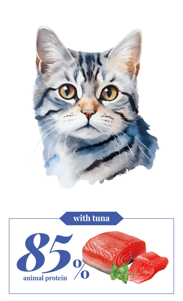 מזון מלא עם טונה, המיועד לענות על הצרכים של חתולים בוגרים.
