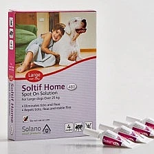 סולטיף הום לכלבים במשקל 25+ – אמפולות נגד פרעושים וקרציות לכלבים במשקל 25-50 ק”ג. פותח במיוחד לשימוש בתוך הבית.