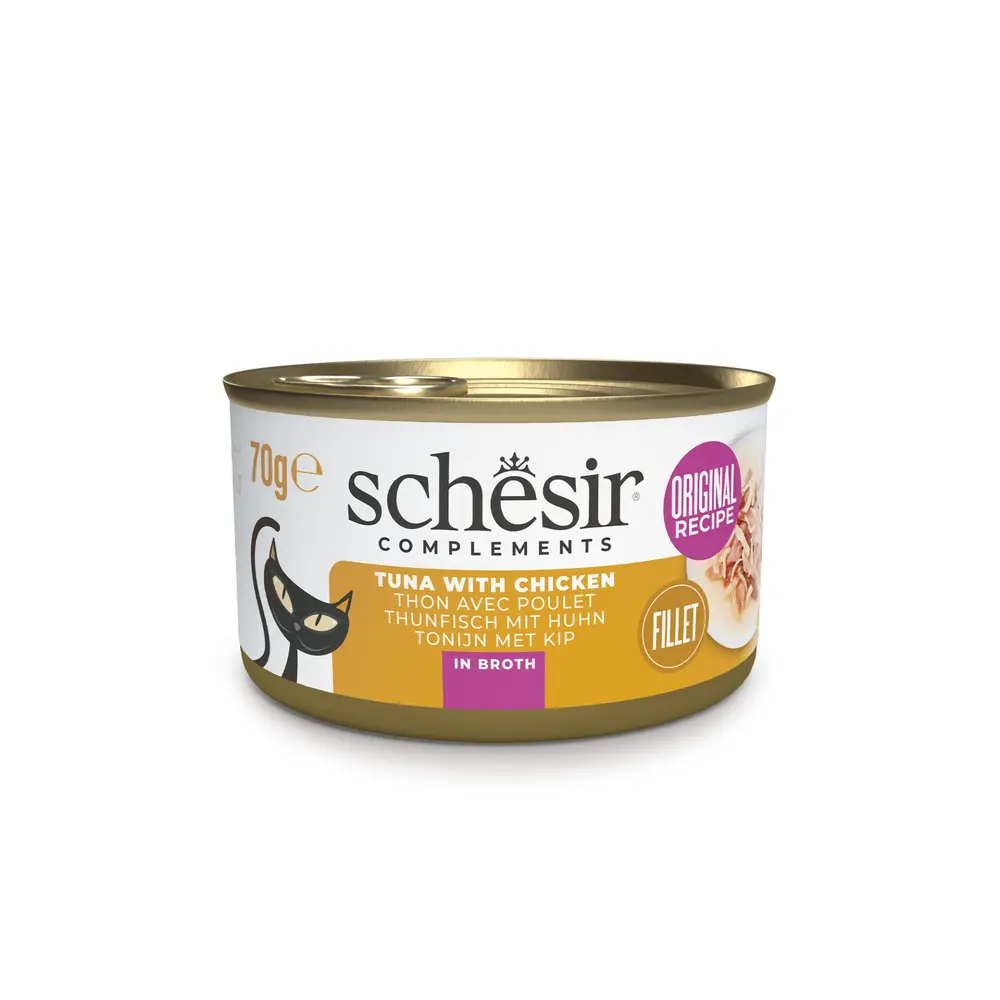 Schesir שזיר מעדן משלים לחתולים טונה עם נתחוני עוף בציר 70 גרם