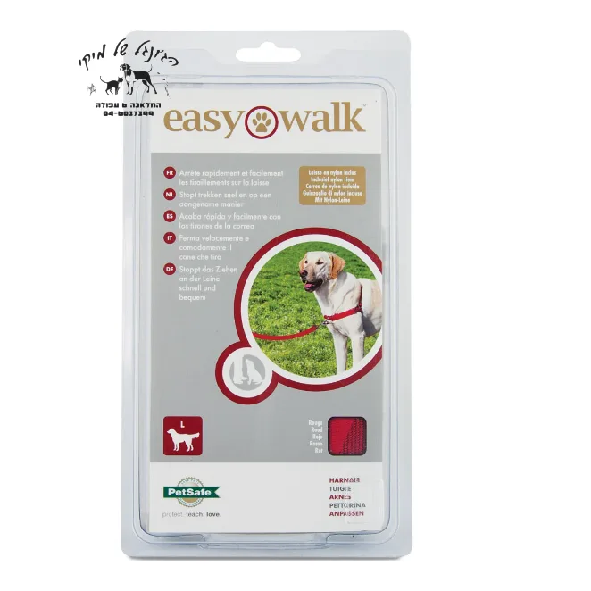 רתמת ההליכה הקלה נועדה להרתיע בעדינות כלבים מלמשוך ברצועה בזמן הליכה. בניגוד לקולרים ורתמות מסורתיות, רתמת Easy Walk אינה גורמת לשיעול, חנק או תחושות מוזרות, מכיוון שרצועת החזה נשענת על עצם החזה. הרצועה הבלעדית שמחוברת לחזית החזה חוסמת כל משיכה על ידי כך שהיא מכוונת את הכלב הצידה ומסיטה את תשומת ליבו אליך. אבזמי השחרור המהיר מקלים על חבישה והסרה של הרתמה, וארבעת נקודות ההתאמה מעניקות לכלב שלך נוחות מיטבית.מאפינים: