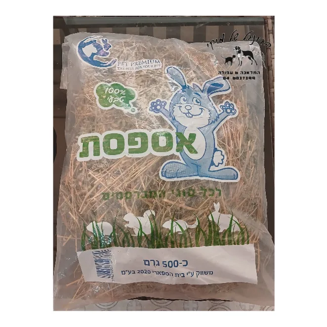 100% אספסת טבעית, תוסף מזון למכרסמים תכולה תזונתית: חלבון 18.1%,רטיבות 8.5%,משקל 500 גרם