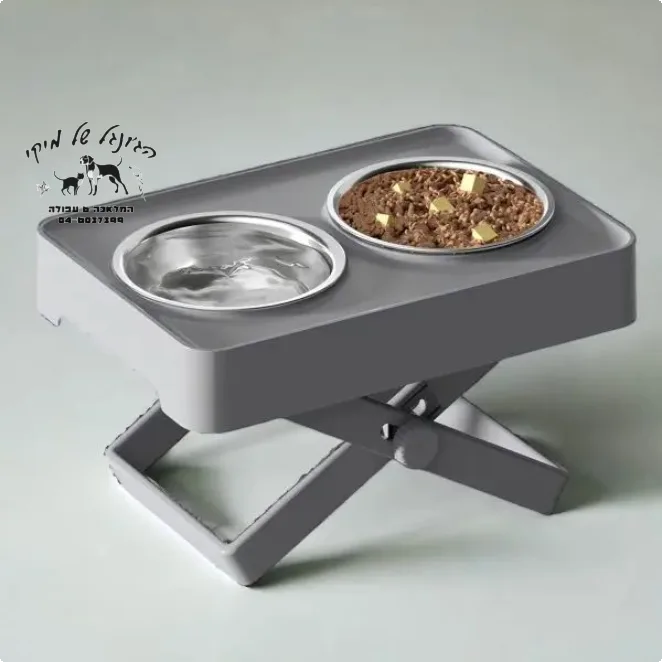 מעמד שתיה ואוכל לכלב אפור