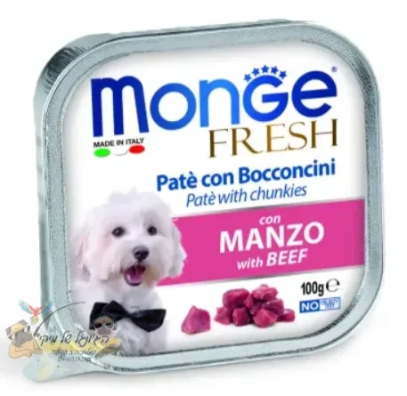 Monge מונג' מעדן פטה ונתחי בקר לכלב 100 גרם