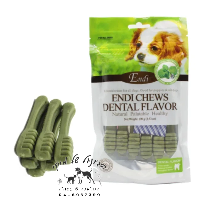 Endi Chews מעוצבים במיוחד לסייע בניקוי שיניים ולהפחתת הצטברות אבנית וריח רע מהפה, באמצעות מרקם ייחודי וגודל אידיאלי ללעיסה יומיומית.