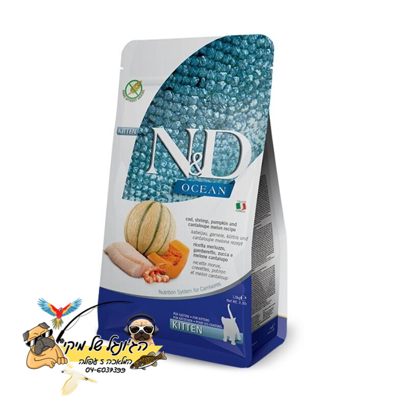 N&D-אן די נטורל דלישס מזון יבש ללא דגנים לחתולים גורים דג קוד שרימפס דלעת מלון 5kg
