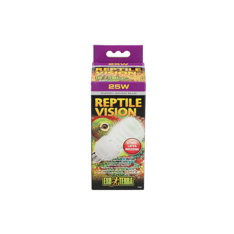 נורה של Exo Terra לזוחלים. נורה ייחודית לעידוד תאבון ורבייה. בנויה להצגת אורכי גל רגישים אשר נצפים ע"י זוחלים. בזכות מנורה זו, הזוחלים יחוו ויתפסו צבעים סביבתם באופן טבעי יותר בדומה למגוון הצבעים שקיימים בטבע. הנורה תסייע לשיפור תנאי החיים ורווחתם הפיזיולוגית של הזוחלים. מומלץ לשלב עם נורות UVB של Exo Terra ליצירת תנאים אידיאליים. 25 וואט.