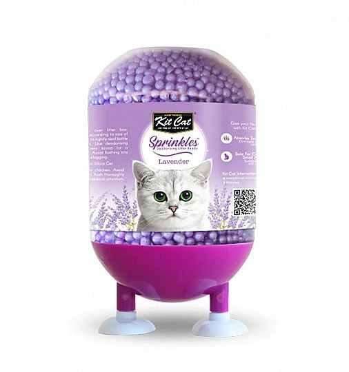 Kit Cat מבשם חול בצורת גרגירים לחתולים בניחוח לבנדר 240 גר`. שמור על אווירה נקיה ומרעננת בעזרת את המבשם הריחני לחתולים של חברת Kit Cat - התערובת המושלמת של רעננות ועדינות! עשויים מ-100% חומרים בטוחים, הגרגירים האלה לא רק מנטרלים ריחות, אלא משאירים גם ניחוח לבנדר עדין ונעים. הגרגירים הקטנים מתאימים לכל חול של חתולים ומביאים תוספת של ניחוח יוקרתי וארומטי לארגז הצרכים של החתול שלך. נוסחא עדינה שמתאימה גם לבישום כלובי מכרסמים. מגיע באריזה סגורה לשמירה על רעננות של המוצר ויכולת אחסון נוחה. מוצר פשוט לשימוש- כל שעליך לעשות הוא לפזר את הקסם על החול בצורה שווה, וליהנות מאווירה נקייה ונעימה. Kit Cat Litter Sprinkles Lavender